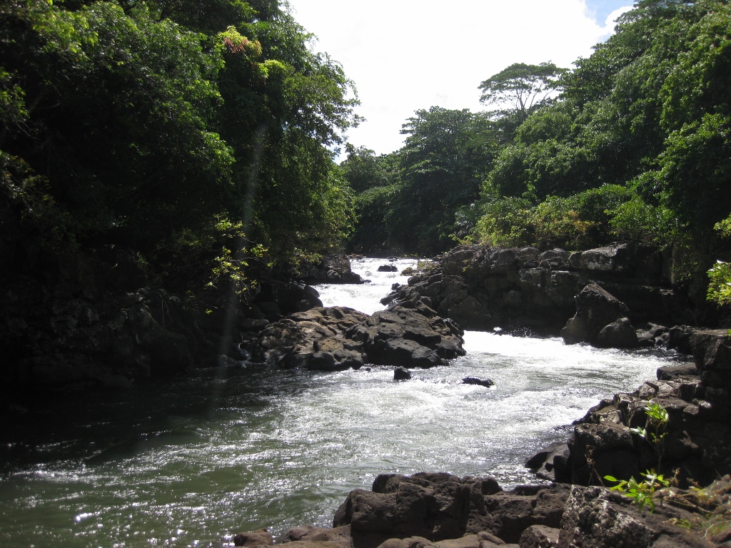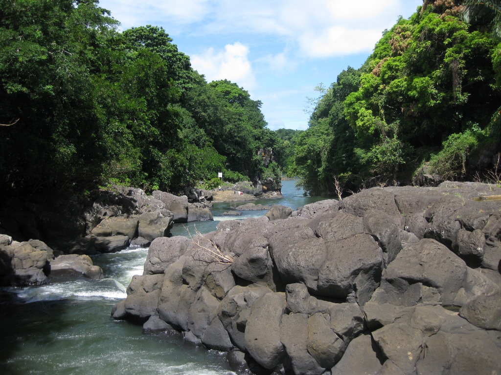 This section of Grand Riviere Sud Est is rugged with rapids pouring over black basaltic rock that culminates in a large waterfall where you can swim and jump off the rocks. It is typically reached by packing into a boat in the nearby town, going to the falls for long enough to take a picture, and then returning a little bit poorer. Hiking there gives a completely different experience, namely enjoyment. The hike is not very challenging as it merely follows the river down, although there are a couple of places where you cannot walk along the side of the river and will have to find your way amongst the trees and jumbled rocks. It is possible to start higher up the river as well.